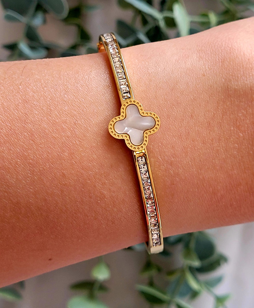 Çelik Zirkon Taşlı Gold Van Cleef Motifli Bileklik