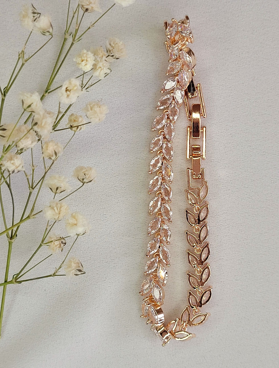Yaprak Desenli Zirkon Taşlı Rose Bileklik