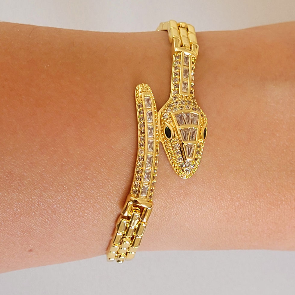 Gücün ve zarafetin sembolü bileğinizde! Altın renkli yılan başlı bu özel tasarım bileklik, hasır örgü kuyruğu ile mistik ve lüks bir duruş sunar. Cesur ve iddialı tarzları sevenler için ideal olan bu bileklik, stilinize farklı bir boyut kazandıracak.
