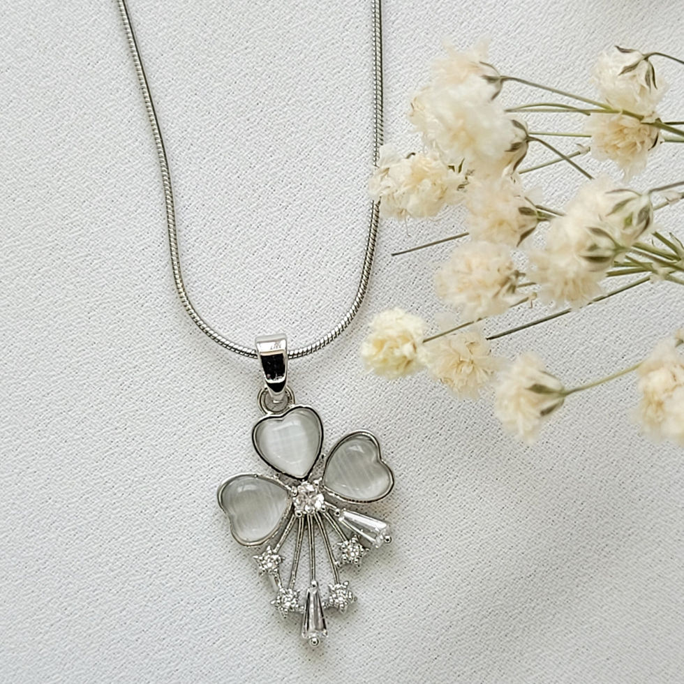 Kalp Yapraklı Çiçek Formlu Taş Detaylı Çelik Kolye
